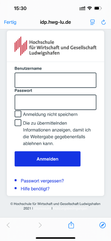 - Melde Dich mit Deinen Hochschul-Zugangsdaten an und bestätige Deinen Status.