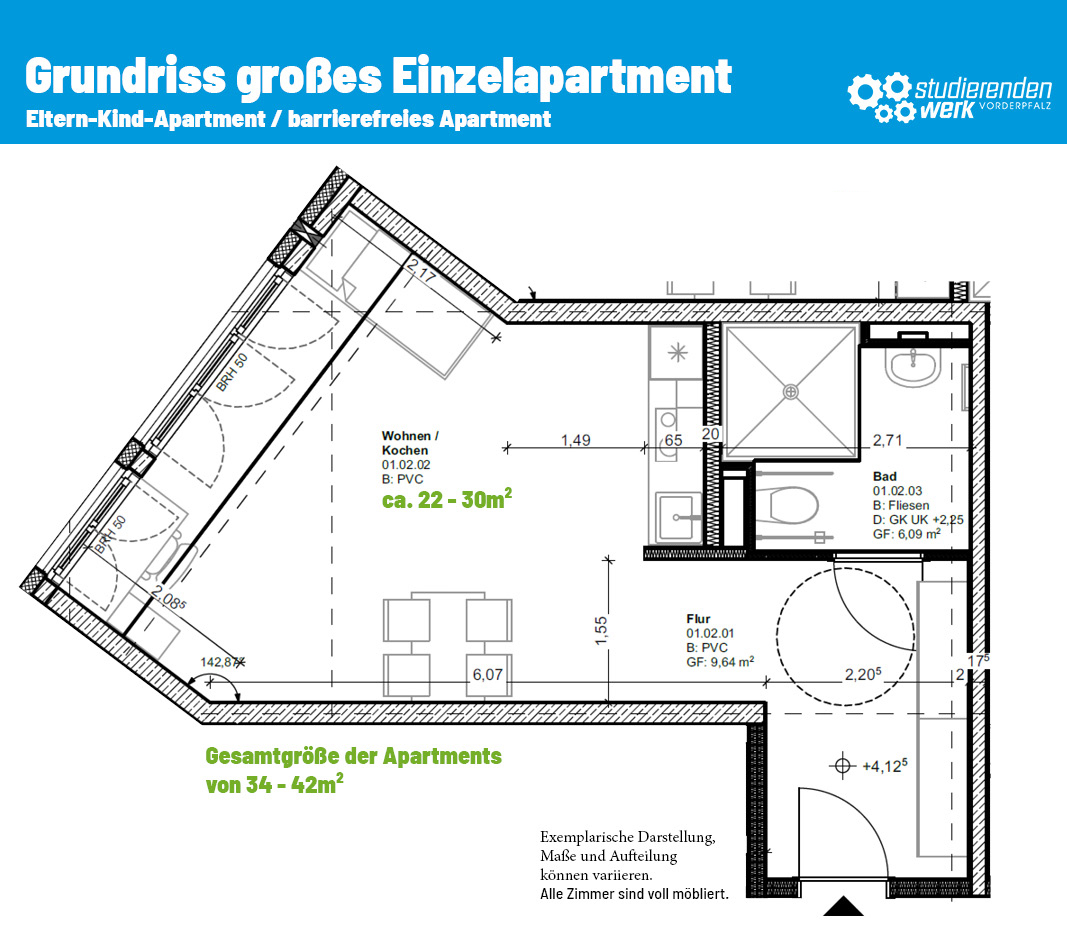 • Großes Einzelapartment - Mutter-Kind-Apartment