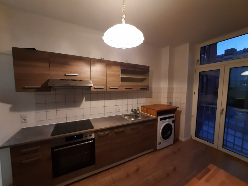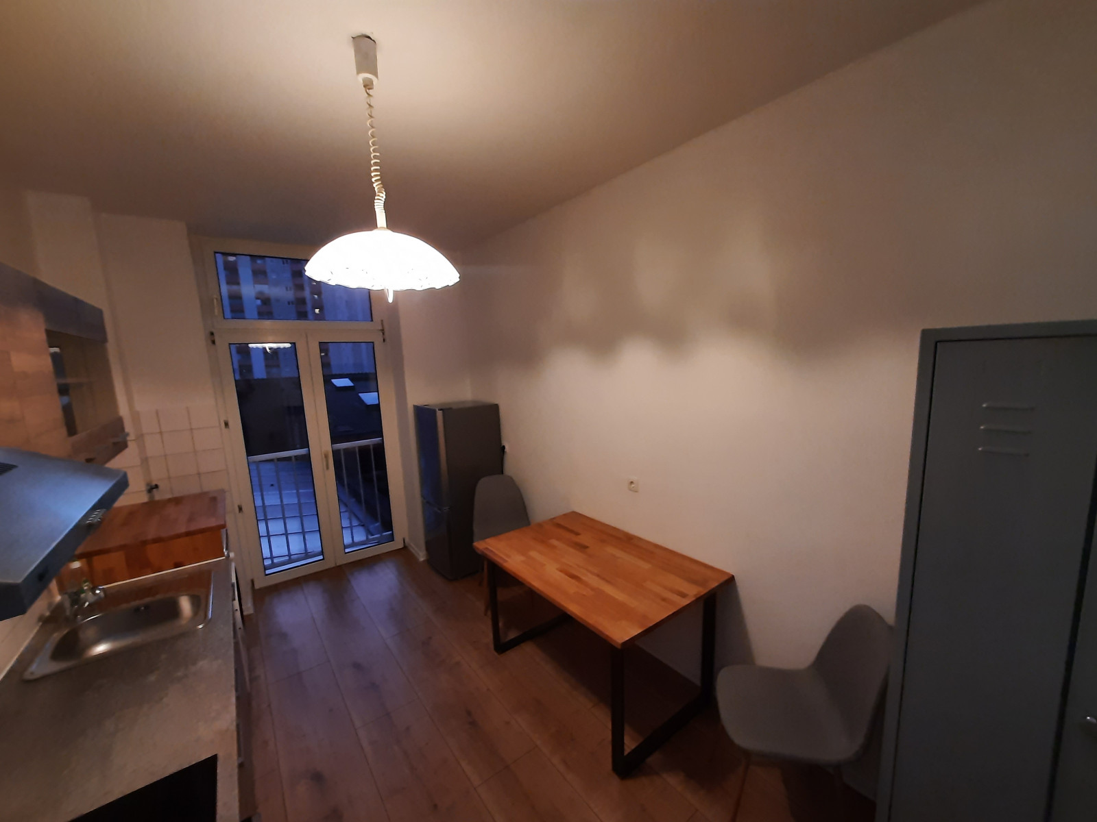 In der Küche ist Platz um gemeinsam zu kochen oder abends ein Glas Wein zu trinken. Durch die große Balkontür mit französischem Balkon ist die Küche sehr freundlich und hell. Kühlschrank, Sitzgelegenheit und eine Waschmaschine sind ebenfalls vorhanden. Gas-Therme ist recht neu.