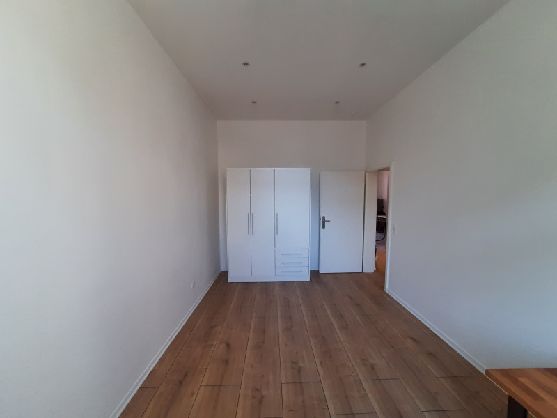 Beide Zimmer wurden 2022 renoviert und sind ca. 14-15qm groß. Die Zimmer sind beide sehr hell, haben jeweils ein großes Fenster (3-fach Verglast) und es wurde schöner neuer Boden verlegt. Zur Ausstattung gehören: Bett (Auf den Bildern fehlt das Bett in einem Zimmer. Ist aber vorhanden), Lattenrost, Schrank, Schreibtisch und Schreibtischstuhl. Diese Möbel sind in den Pauschal-Nebenkosten enthalten.
