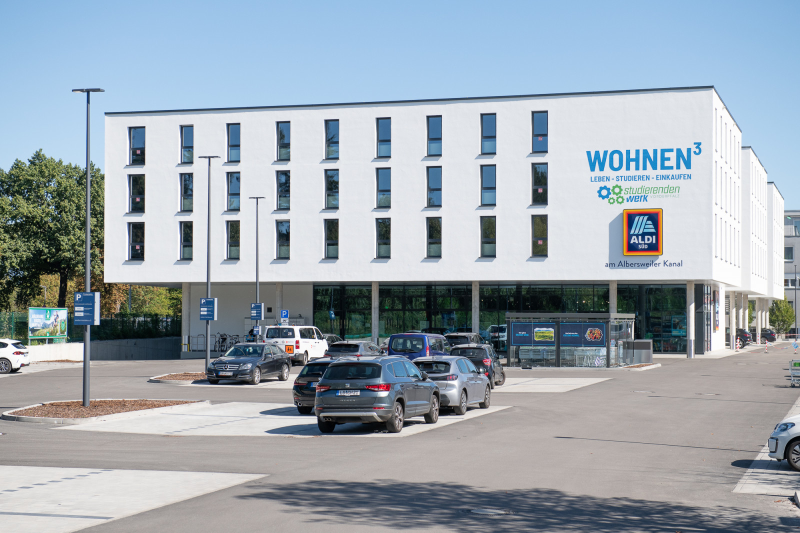 WOHNEN³ - Life - Study - ShoppingThe residence hall is located in the center of Landau with a supermarket on the ground floor. Built in 2025 and available for first occupancy in the winter semester 2025/2026.